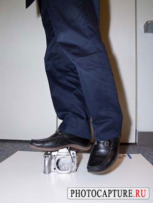 Во время презентации камеры многократно повторялся небольшой "трюк": на корпус камеры становился мужчина среднего веса, не используя никаких опор. Мы не будем выдумывать ничего нового. Вот фотография человека, весящего 75 килограмм, стоящего на магниевом каркасе. Рядом фото того же человека, стоящего на включенной камере. Все издевательства каркас пережил без каких-либо последствий и будет подвергнут подобным экспериментам еще много раз на различных выставках и презентациях.