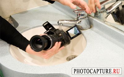 Если говорить о влагозащищенности, то невозможно придумать лучшей проверки, чем бросить включенную камеру в снег, а затем хорошенько облить водой. Для чистоты эксперимента была открыта вспышка камеры, а вода лилась во время серийной съемки. Камера пережила это испытание с достоинством, хотя нас это и не удивило, т.к. данный экземпляр уже попадал под 3-х часовой ливень в Стамбуле и многократно обливался перед камерами, да и просто в присутствии различных фотографов.