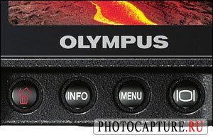 В нижней части корпуса под поворотным ЖК-дисплеем расположены традиционные управляющие кнопки: "удаление снимков", "INFO", "MENU" и кнопка переключения режима визирования.