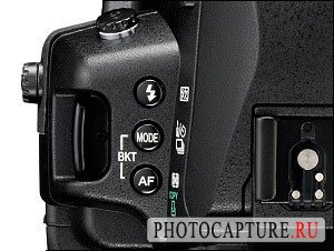 На верхней панели камеры, слева от пентапризмы, расположены 3 многофункциональные кнопки:
