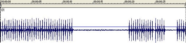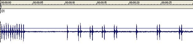 Для определения скорости включения камеры, скорости серийной съемки и продолжительности серии использовался очень простой и наглядный метод - крепление к камере компактного микрофона. С помощью ПО Sound Forge записываются звуки, издаваемые камерой, после чего звукозапись анализируется. Точность измерения временных промежутков составляет порядка 0.01 сек.