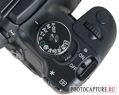 Верхняя панель. На верхней панели камеры расположен диск управления режимами съемки, переключатель on/off, кнопка спуска, главное управляющее колесо.