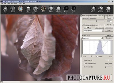 Digital Photo Professional ver. 2.2.0.1 - RAW-конвертор идущий в комплекте с камерой на диске. Он позволяет проводить базовые операции с изображениями: настраивать экспозицию, баланс белого, контраст, резкость и т.п.