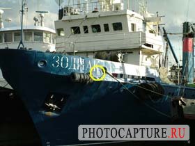 На изображении справа точечный замер осуществлялся по точке на темном корпусе судна. (Сравните с областью в желтом круге на изображении слева). В результате полученной экспозиции была пересвечена белая надпалубная часть, при этом корпус судна получился четким с большим количеством деталей, в то время как на снимке слева он находится в тени. Обратите внимание, что выдержка уменьшилась, а диафрагма открылась до f2.8, что позволило пройти большему количеству света сквозь объектив.