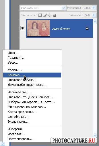 В палитре слоёв внизу есть панель управления с несколькими инструментами, кликаем по пиктограмме чёрно-белого круга, в открывшемся меню выбираем "Кривые..."