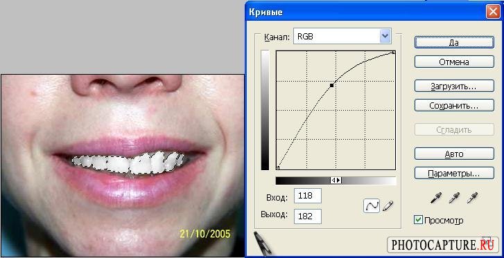 Выделим зубы с помощью Лассо. Можете использовать другой приём, я использовал быструю маску