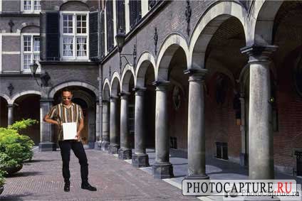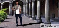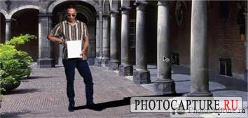 Выделите белый фон инструментом "Magic wand" ("Волшебная палочка"), который находиться на панели слева или просто нажмите "W". Инвертируйте выделение нажатием на клавиши "Ctrl+Shift+I", скопируйте человека в буфер обмена ("Ctrl+C") и вставьте поверх нашей первой фотографии. Подгоните изображение человека соответственно размерам в первой фотографии инструментом "Free transform" ("Свободное трансформирование"), который находиться в меню "Edit" ("Редактирование") или нажмите "Ctrl+T".