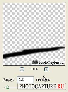 Дальше надо размыть немного тень, опять же насколько сильно размывать тень надо исходить из фотографии, в моём случае хватило и одного пиксела. Итак, идём в меню "Filter > Blur > Gaussian blur" ("Фильтр > Размытие > Размытие по Гауссу").