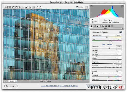 закладке Lens Correction, в котором можно выбрать: Off, Highlight Edge или All Edges. Как и в случае с Резкостью и Шумоподавлением, эффект от применения этого инструмента следует рассматривать на 100% или более увеличении.